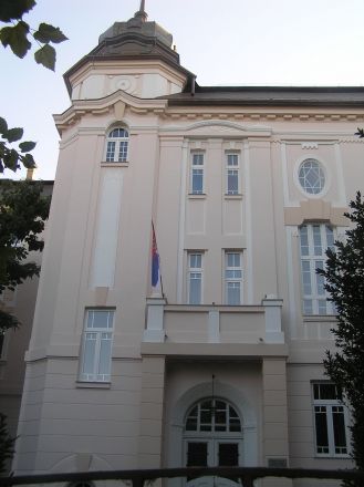 Skylt uppsatt på det hus där den slovakiska kulturorganisationen MSS (Matica Slovenská v Srbsku) huserar.