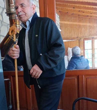En av gästerna på mitt kafeneion bar på en konstfull käpp - förmodligen med drag från den gamla traditionella herdestaven. Han satt i en inglasad avdelning tillsammans med andra män, jag strax utanför. En kvinna kom och knackade på dörren varpå mannen reste sig och kom ut. Så talades de vid en stund.